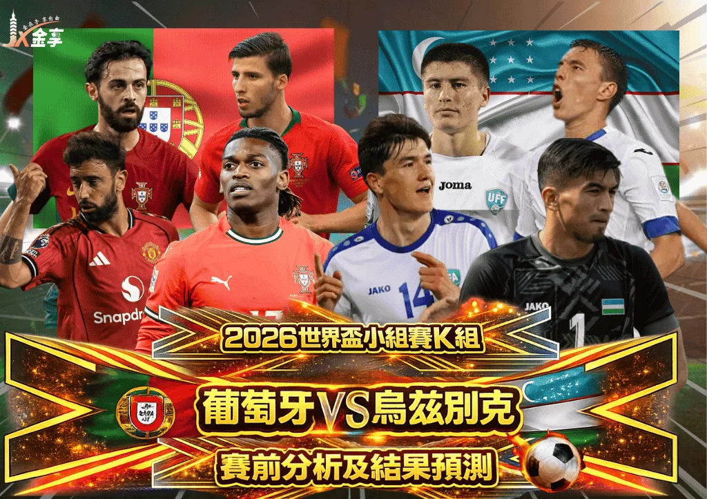 2026世界盃小組賽K組焦點戰葡萄牙VS烏茲別克將在休士頓登場,葡萄牙以控球與肋部滲透主導節奏,烏茲別克則依靠壓迫與直線反擊尋求破口,本文從核心球員、戰術預期、推進方式到盤口趨勢完整解析,並提供比分推估與投注參考,協助你掌握本戰的比賽方向。